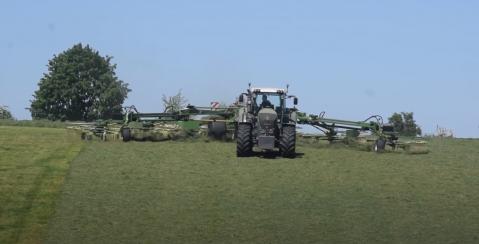 Continuation of the previous video, swath in first cut in early May in Fendt 930 vario & sixtuple swath Krone swadro 2000 19 meters wide!