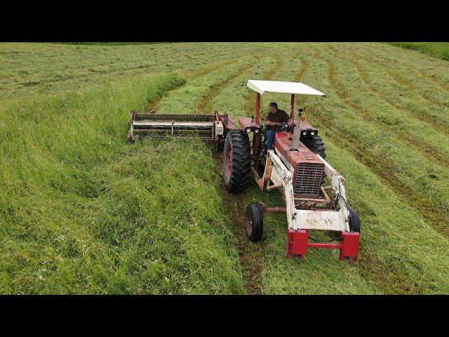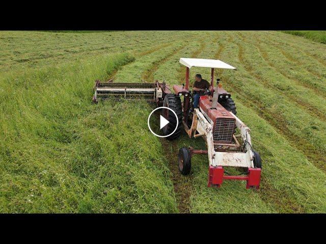 Today I'm finishing first cutting hay, and it is the thickest hay of the year. The grass has grown so tall that it's leaned over, and I have to go slow with the haybine to pull it off of the ground.