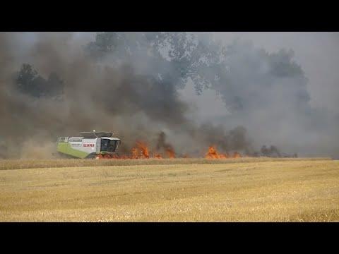 I saw once a field where combine harvesters cut the crops in front of the fire and the farmer who had his farm nearby dropped the trailer on his tractor, put a plow and before firefighters arrived, the fire was almost gone. it wasn't as windy as here though so the fire was travelling slower. He managed to plow 2 or 3 times before fire reached plowed earth. Then there were guys with extinguishers running around trying to contain any small fires when wind blew some burning straws over. As I said by the time firefighters arrived part of the field was plowed and fire was contained.