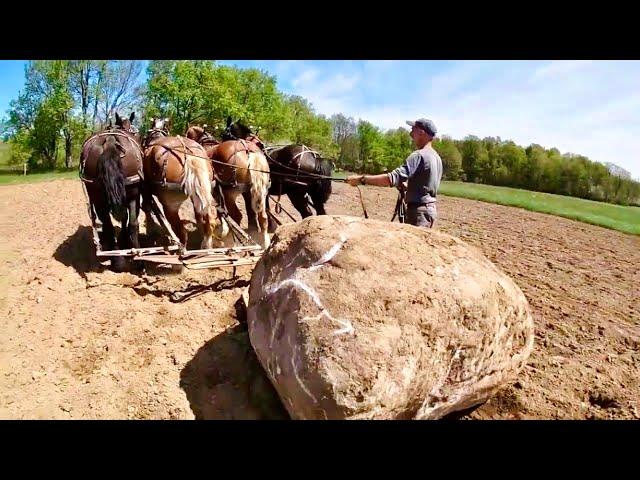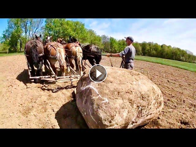 Today@ Working Horses With Jim, I hook up all four Belgian and Percheron draft horses to see if they are strong enough to pull out a huge boulder that I dug out of my corn field. #horsepower #drafthorses #drafthorsefarming