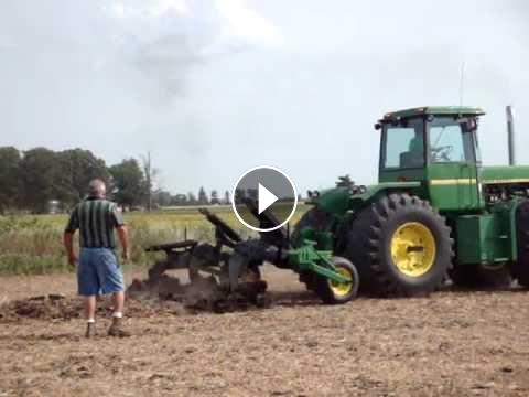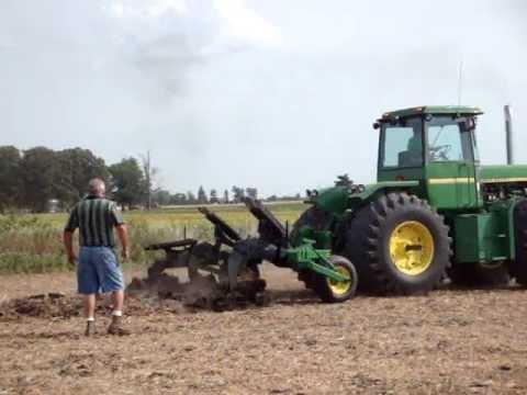 This is why you do not no-till farm ground for 20 years with 350bushel capacity combines and 1500 bushel grain carts. A 5 shank 915 John Deere V ripper tied onto an 8630 with 50 series motor with 300 horse pulling in A3. Notice the 30.5 flex as the ripper tries to get ahold of the compacted ground. There are 1500 lbs wheel weights on the inside of the front wheels.