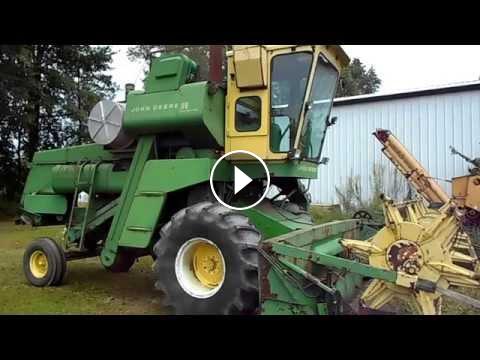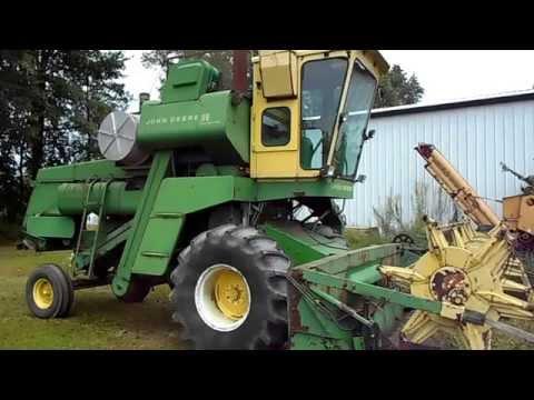 Well after draining a little over 3 gallon of water out of the fuel tank I got hear running. I have done a lot to this old JD 95 Corn Special inside and out and she can run with the best of them. Tires, chopper grain header and rotary air screen are just some of the things I have changed on this machine. I have an AC Gleaner G 8x20 corn head I mounted on this combine with some mods to the feeder house and the head and she handles it good. When money is short a farmer has to get creative to get done what he or she needs to. So I hope you like. Bandit