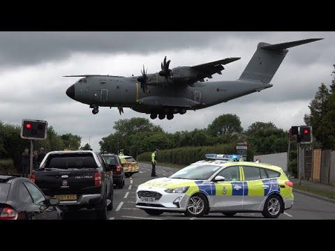 Royal Air Force & Metropolitan Police cars block the road for an A400M Atlas, one of the larger planes to land at RAF Northolt in London after arriving from Chicago, before going back to RAF Brize Norton in Oxfordshire.