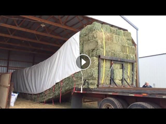 Hydraulic Hay trailer unloading small bales at our ranch. Copyright Janet Williamsen 2016. well now, you'd need to have though this well through before starting - good well formed and loaded bales - otherwise first load would have been Last load+ a Rocketing! thanks for showing