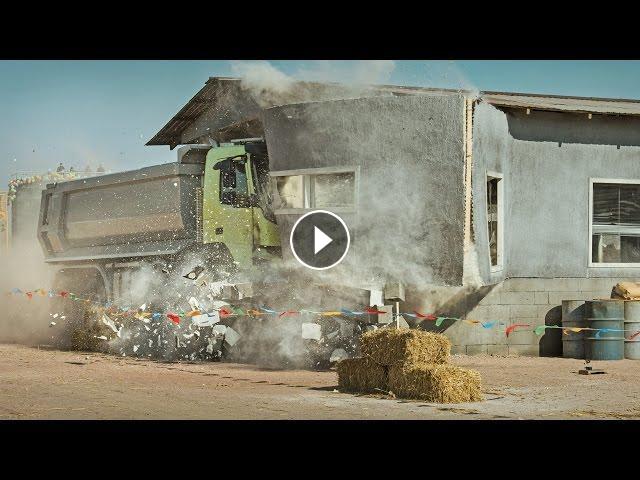 This live test was set up to demonstrate the sturdiness and mobility of the Volvo FMX. A unique cage construction, cast-iron front plus corners and skidplate of high-grade steel make this a very tough truck indeed. And thanks to Automatic Traction Control – a revolutionary new feature that automatically engages the front axle when you need it – you won’t get stuck.